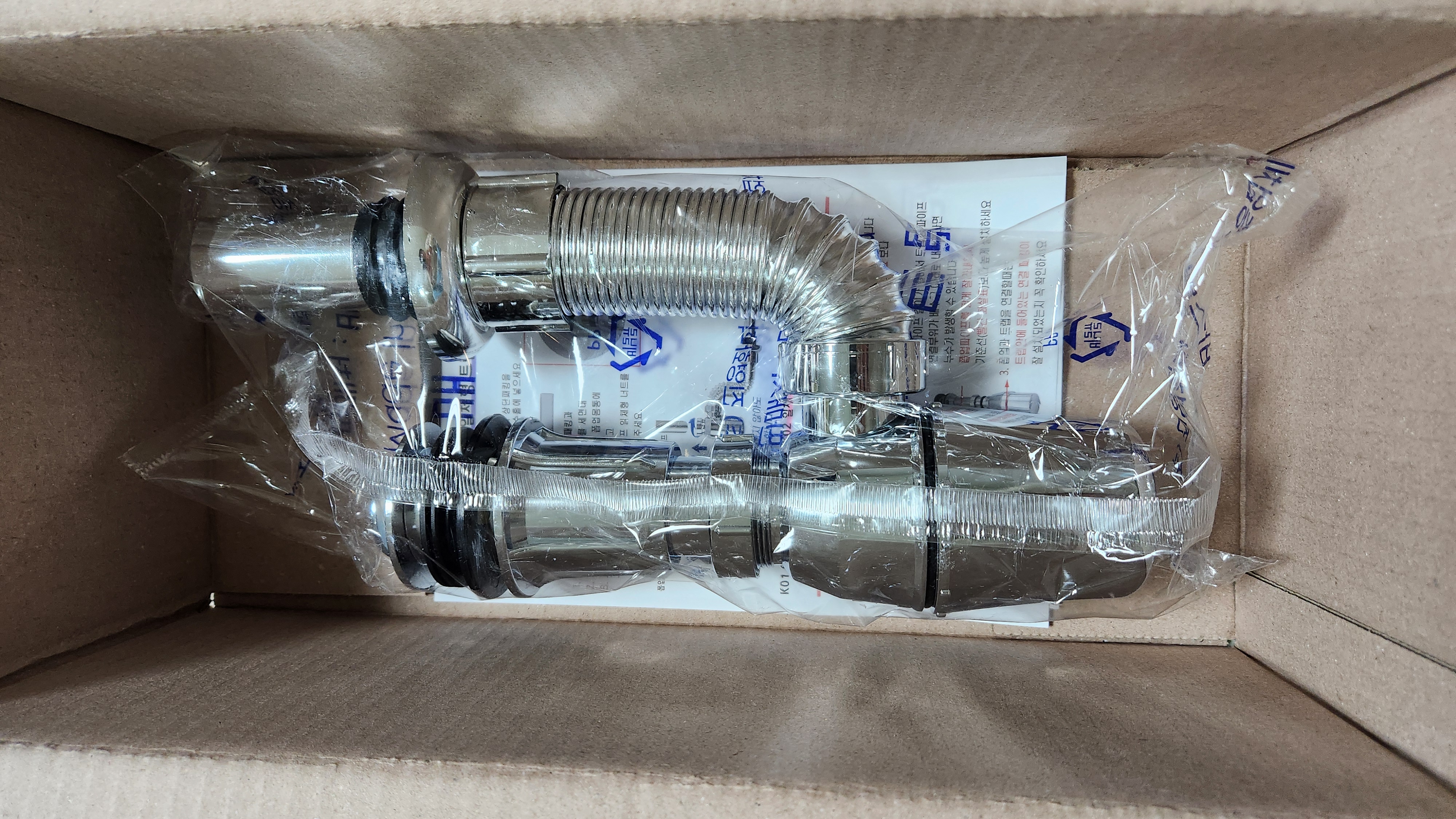 함께 들어있던 설명서를 정독하고 바로 세면대 배수관 교체작업에 들어갑니다.